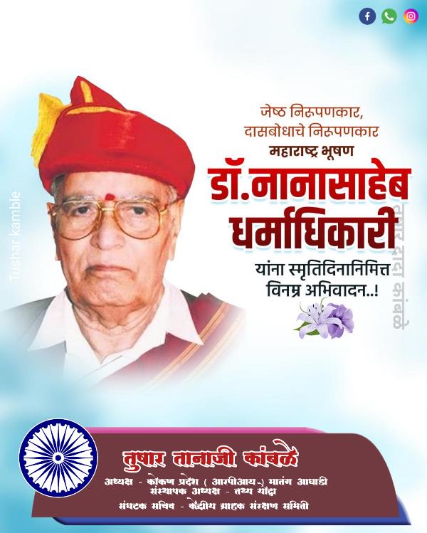 ज्येष्ठ प्रबोधनकार , दासबोधाचे निरूपणकार महाराष्ट्र भूषण डॉ. नानासाहेब धर्माधिकारी यांच्या स्मृतिदिन निमित्त विनम्र अभिवादन .
