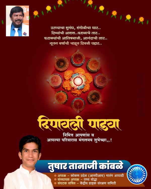 उटण्याचा सुगंध, रांगोळीचा थाट.. दिव्यांची आरास.. फराळाचे ताट... फटाक्यांची आतिषबाजी, आनंदाची लाट.. नूतन वर्षाची चाहूल दिवळी पहाट.. दिपावली पाडवा निमित्त आपणांस व आपल्या परिवारास मंगलमय शुभेच्छा,,!