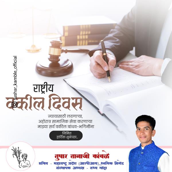 राष्ट्रीय वकील दिवस न्यायासाठी लढणाऱ्या, अहोरात्र सामाजिक सेवा करणाऱ्या माझ्या सर्व वकील बांधव-भगिनींना निमित्त हार्दिक शुभेच्छा..