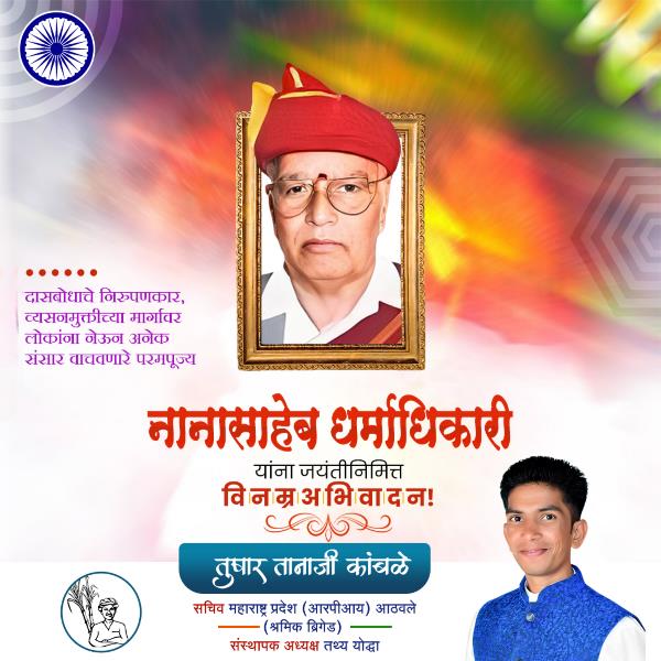 दासबोधाचे निरुपणकार, व्यसनमुक्तीच्या मार्गावर लोकांना नेऊन अनेक संसार वाचवणारे परमपूज्य नानासाहेब धर्माधिकारी यांना जयंतीनिमित्त विनम्र अभिवादन !