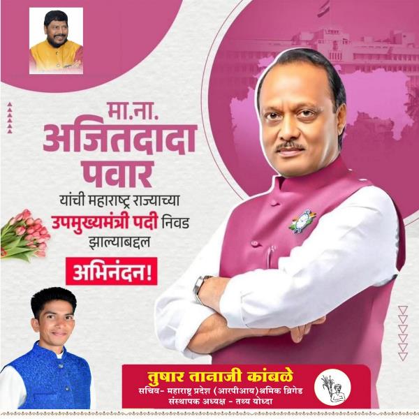 मा.ना. अजितदादा पवार यांची महाराष्ट्र राज्याच्या उपमुख्यमंत्री पदी निवड झाल्याबद्दल अभिनंदन ! Fri, Dec 6, 2024